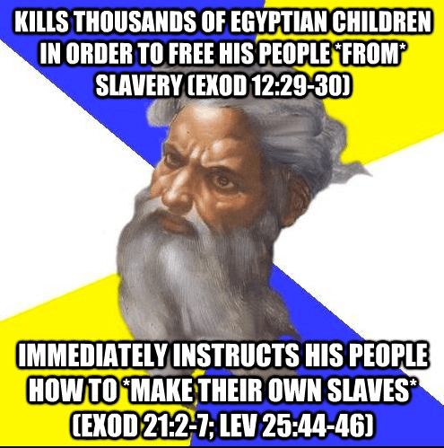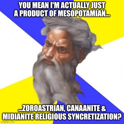 …But at least now the reader can breathe a sigh of relief and glorious joy knowing that the absurdly preposterous, repugnant and bloodthirsty nefarious tribal Yahweh-Jehovah desert cacodemon deity character doesn’t exist ipso facto (i.e. – doesn’t exist in reality, as in is just a former local puny temperamental, megalomaniacal, self-fetishizing failed absurd real estate genie of the Bronze-Iron Age Levant deserts (really, it’s mostly concerned about real estate, land and owning Jerusalem which even already existed and was home to other Canaanite tribes, and needing occasional lying and inventing delusional humanoids to speak and make excuses for it, see https://unpleasant.ffrf.org/), or the beliefs of any of the various Abrahamic mind control brainwashing cults that sprang from the same vortex of personal obscure agenda-filled dubious sources, happy that you don’t have to believe in or mindlessly follow or praise it’s vile, loathsome, bizarre and absurd claimed actions, presented words and failed predictions etc, which were only written up and invented by anonymous mega-superstitious ethnocentric writers in the Iron Age deserts for just their own local tribal community clan and society behaviorisms anyway, that the immortal burning hellish worms, floating around Mesopotamian-Zoroastrian demons and everlasting Egyptian lake of fire is fictitious, and so is the biblical Hebrew-Zoroastrian sudden new found love of apocalypses and taking over the world, that Egyptian pork prohibitions and their baptism ceremonies are just ancient primitive customs that has no place in the post-renaissance era, post-scientific revolution era and post-Age of Enlightenment period (just let the ignorant and primitive hyper-superstitious and blood magic witchery behaviorisms of the Bronze Age and Iron Age just stay in the Bronze Age and Iron Age where it belongs and was born/invented, leave Yahwehism-Zoroastrianism in peace in their home deserts already, don’t the children today deserve better than to be initiated into the dark and obscure esoteric crypto-mystical Yahwist-Jehovahist cabal of mind control sheepism and goatism blood magic sorcery life?, of imported Mesopotamian demons and hocus pocus visions of multi-headed creatures and wheels covered in eyeballs etc, ranting delusional desert lunatics, genocidal hyper-ethnocentric cultists and neurotic sociopaths writing myths and failed predictions on the backs of the skins of dead animals, talking snakes and magical fruit fables, obsessive Hebrew-Zoroastrian apocalypses melting-zapping fantasies and the Egyptian baptism water magic and eternal lakes of fire tortures etc? Are the hodge-podge hybrid Mesopotamian-Hebrew-Egyptian-Zoroastrian-Canaanite tentacled demiurges under different names and titles truly the answer to any questions, don’t children deserve better than that primitive mythomania vortex? Are the mutated ancient deserts pretend worlds and their superheroes and anonymous fabulist gurus and failed predicting soothsaying prophets-warlocks and their ways really the winning formula for the planet and civilization? Because surely there are more important and valid “real world” things to teach them and use brain matter on aren’t there?), that their beliefs were just adapted and mutated shuffled around borrowings from other older myths, legends and religious beliefs from other older civilizations, cultures, societies and peoples. Knowing this then It’s probably best to take the advice from the many various philosophers in antiquity who were on to the many valid ideas and evidences about reason, knowledge, rational arguments, critical thinking, the real functioning cosmologies, views on existence, astronomy, natural world, medicines, sciences and especially the real truths based in reality which is even the same real world reality that is still real today, not based in pretend world inventions and personally made up esoteric crypto-mystical magic numbers jimble jamble in some anonymous writer’s personal mind…