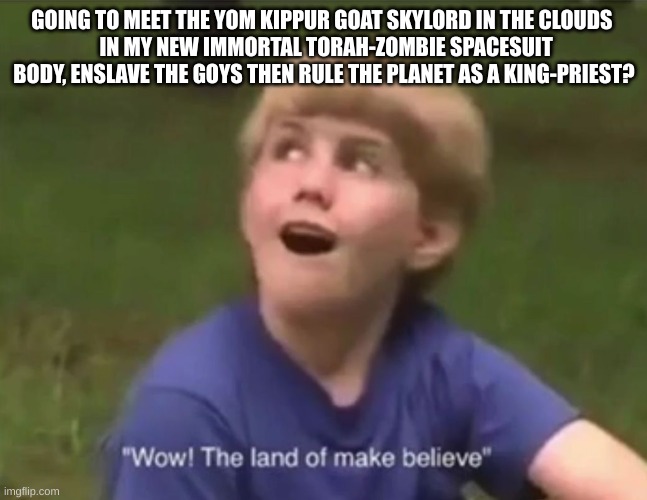 The ancient Bronze-Iron Age desert cacodemon Yahweh-Jehovah’s very own godly anointed Jesus apostles with the holy ghost visions and heavenly secrets revelations bringing in the great Yahwehism-Jehovahism blood magic voodoo kingdom to Jerusalem and Canaan for the planetary temple-state religion hocus pocus government to be ruled with Thanosian powers splendor with the help of his chosen new elect Sanhedrin, then the world and people will be exorcized by the chosen anointed apostle-witches and the demons will verily be cast into kangaroos and then into the Egyptian Lake of Fire as a heavenly sign, much frankincense and myrrh will be forsaken and abominable because of the smoke and sulfur rising from the abyss where Thanos sent Azazel the Devil to rule the world from, then the risen Yeshua-Joshua-Jesus atonement blood magic zombie spacesuit body Azazel-Barabbas Goat of Galilee will make Zion his new throne including free blood martinis at all the cafes, pubs and bars and send forth golden scrolls making David, Moses, Noah, Abe and Jacob and some other guys in the desert joyous and anointed powerful special immortal zombie-priests who will be able to smite the great talking dragon and his chariots, able to conquer Babylon and beasts as well as make coins appear in fish and turtles mouths, make swords appear in mouths, fiery scorpions fall from the sky, to command dildos to be made from gold and brass, resurrect fig trees and foreskins, oily virgins and virgins with the most best oil, multitudes of scrolls and golden lamps across the world from Egypt to Mesopotamia, Amen Glo-Ry!