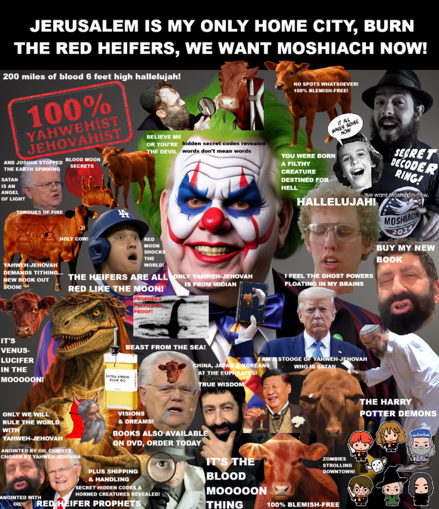 Another true Man of Yahweh-Jehovah the desert cacodemon deity and his son Jesus’ very own handpicked American apostle prophet saving many souls and humanoids and saving America and the entire free world for the great blood magic voodoo empire of Jerusalem with the holy ghost risen from the sewage abyss for an immortal temple shekel blessings kingdom just as written in the glorious dubious Book of Lies. Not even one unblemished goat was boiled in its own mother’s milk just as prophesied in the books by someone since the days of Noah’s and Abraham’s sheep and tents.
